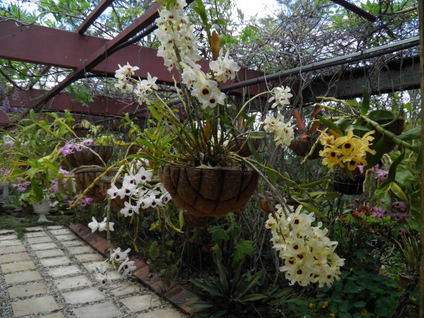 §I NEVER fertilise my orchids. By growing them outside under the Wisteria, the leaves, possum and bird poos and spent flowers drop into the pots and baskets and then wash through them.