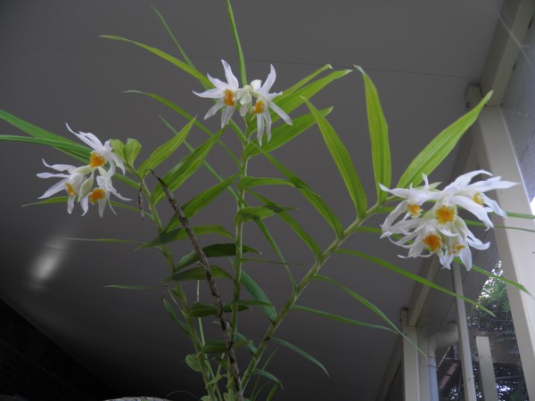 Thunia Alba is a tall attractive deciduous terrestrial orchid with 30 to 60 centimetre long canes which are the pseudo bulbs. These are covered with lanceolate bluish-green thin 7 centimetre long leaves.